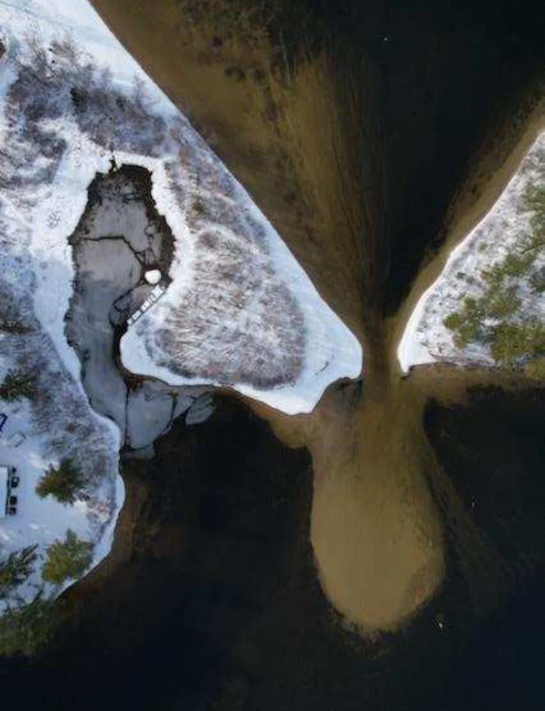 The photo to the left is an aerial picture showing the narrows and the sand deltas that continually build up. The sand mostly comes from the lake bottom when stirred up and beach erosion on rainy days. With landowners illegally adding sand to their properties comes the side effect of even more sand entering the lake and ending up as part of the build-up problems choking the narrows.